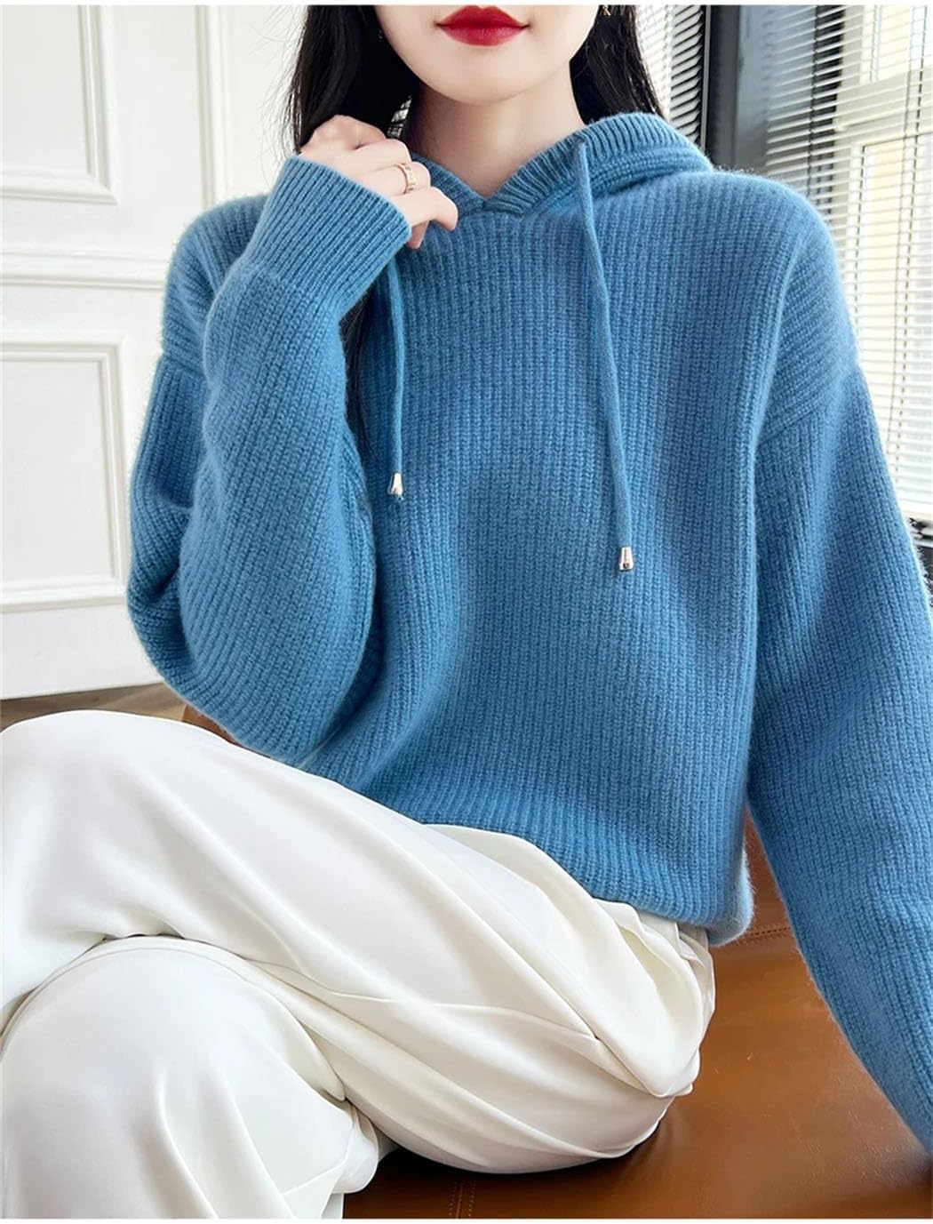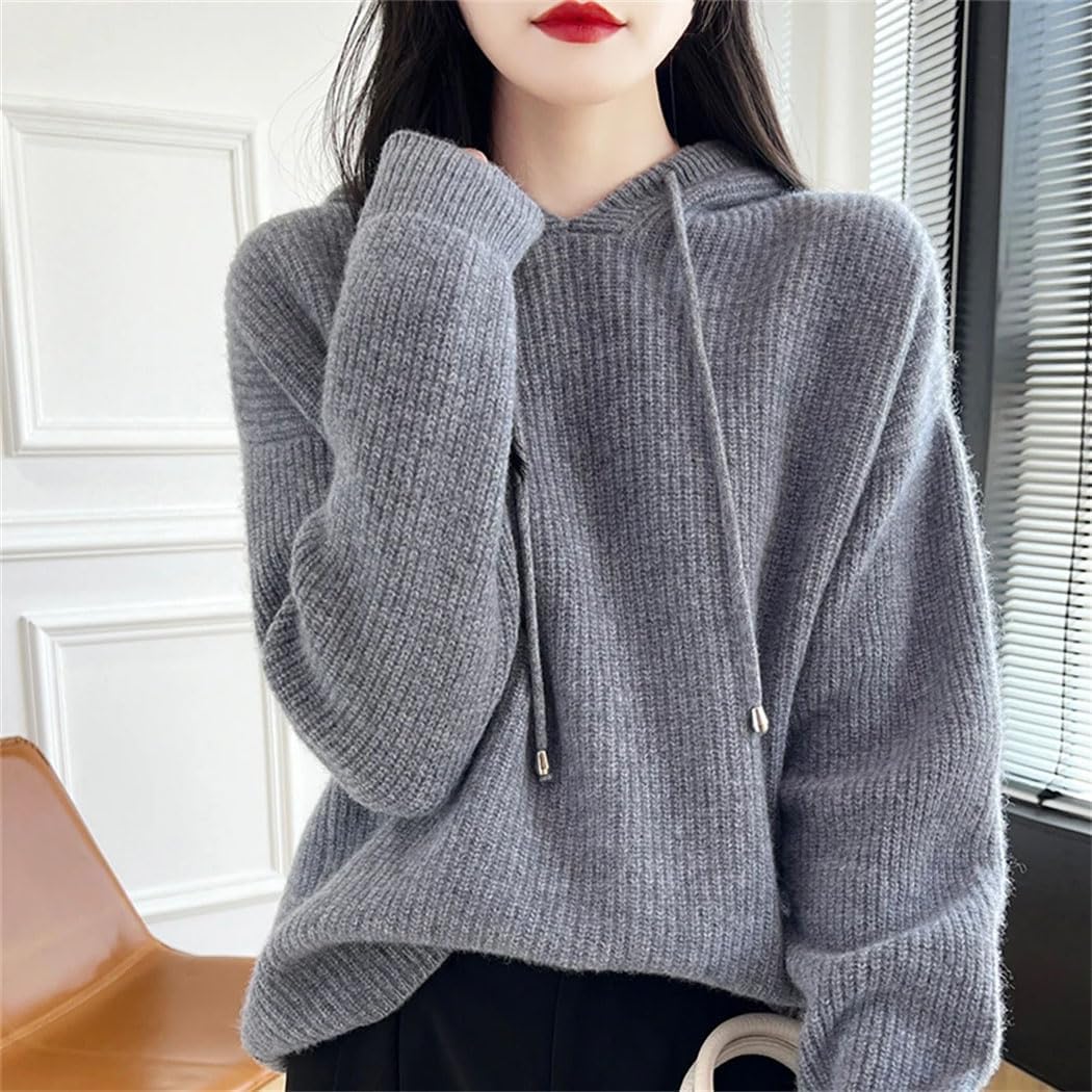 Material:WoolMaterial:100% WoolHign-Concerned Chemical:NoneRelease Date:Winter 2024Craft Of Weaving:KnitPattern:Loose-FittingYarn Thickness:Fine YarnSeason:Autumn/WinterThickness:StandardClosure Type:NonePattern Type:SolidGender:WOMENSleeve Length(Cm):FullStyle:CasualDecoration:NoneSleeve Style:RegularCollar:HoodedClothing Length:RegularElasticity:High StrecthFit Type:LOOSEStyle:Fashion