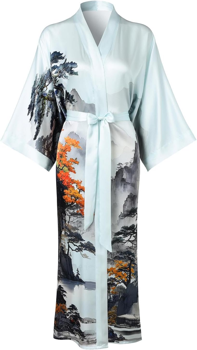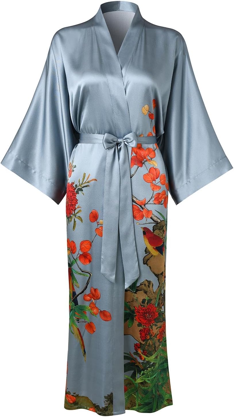 This upscale luxury 100% silk robe with a variety of colors to choose from, suitable for bridal parties, anniversaries, honeymoons, Bathrobe, vacations or everyday leisure, friends party and so romantic warm and beautiful occasion. 100% Silk fiber health care function is irreplaceable, which contains the human body must have of amino acids, amino acids contained in human skin is almost the same, so there are human "second skin" reputation. Featured high-quality silk fabrics, like human skin, delicate and smooth. This robes ensure the ultimate in comfort and style in any season. It is the great gift for the bride, bridesmaid, mother, wife and girlfriends.In view of the noble characteristics of silk quality, routine maintenance, recommended the preferred dry cleaning.