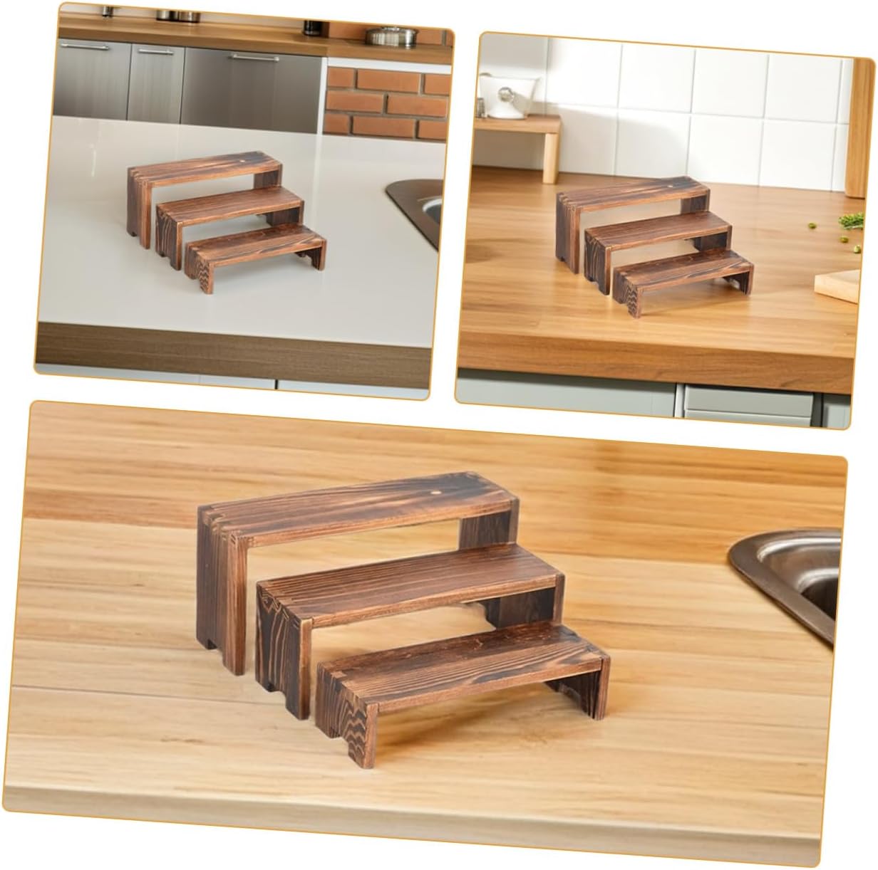Package Include 2 x large storage rack 2 x medium storage rack 2 x small storage rack Characteristics -Product Info: Three-tier storage shelf -Material:Wooden -Minimalist aesthetic: the simple design well with various interior decors, enhancing your home's style display accessories -Color:Coffee -Size Large:24.00X11.00X7.50cm/9.43X4.32X2.95in -Size Small:20.00X7.50X4.50cm/7.86X2.95X1.77in -Flexible: includes Wooden Display Stand, providing versatile layout options to suit different family needs jewelry supply -Chic wooden design: the refined wood construction adds a touch of elegance to your home, Suit for living rooms and kitchens wood risers -Generous threetier storage: easily store and display cosmetics and desserts with its spacious threetier design, keeping your area organized wooden display shelf -Wooden structure: built to last, this stand offers strong support for multiple items, making stability and durability figures wooden stand -Size Medium:22.00X8.00X7.50cm/8.65X3.14X2.95inGoods Informationwood stand for display Its smooth surface and sturdy base make it easy to arrange and reposition items, making a polished look for retail displays or personal collections at home.desktop dessert stand The tiered layout of this wooden stand maximizes space efficiency, allowing users to display multiple items without clutter