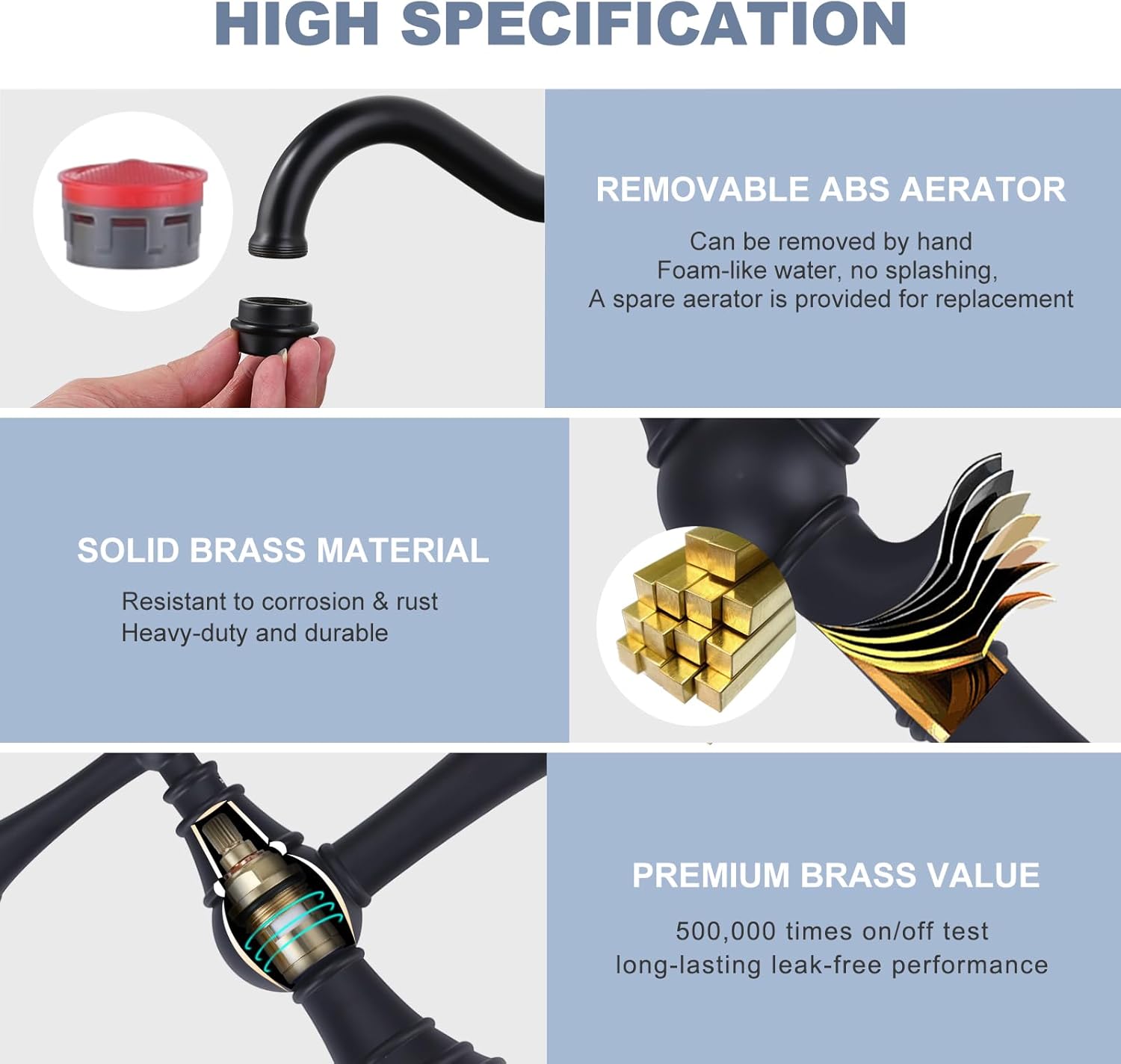 WOWOW Black Bridge Kitchen Faucet 2 or 3 Hole, and Stainless Steel Bar Faucet