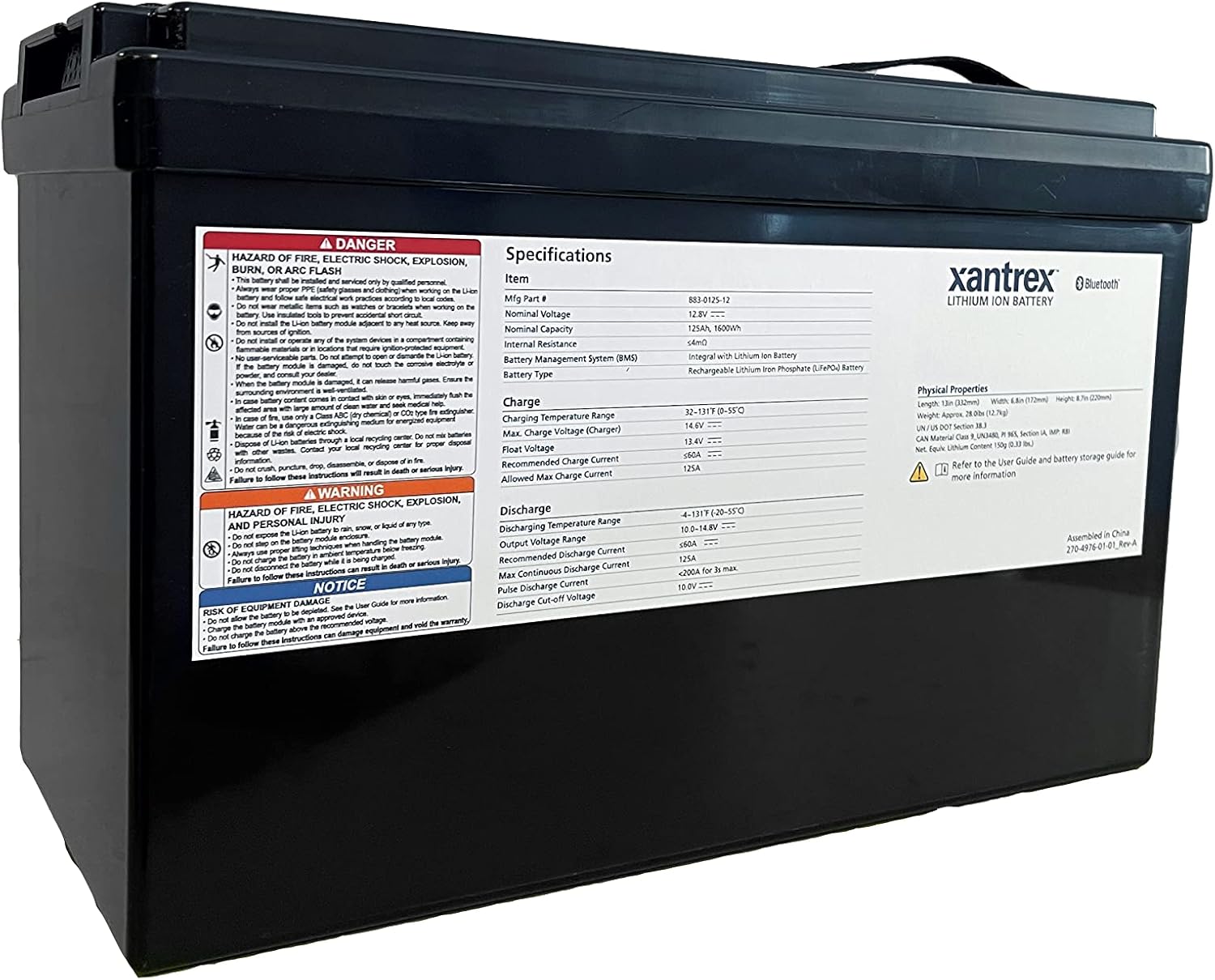 | Included Components | Xantrex 883-0125-12 Lithium Ion Battery - 12V, 125 Ah |