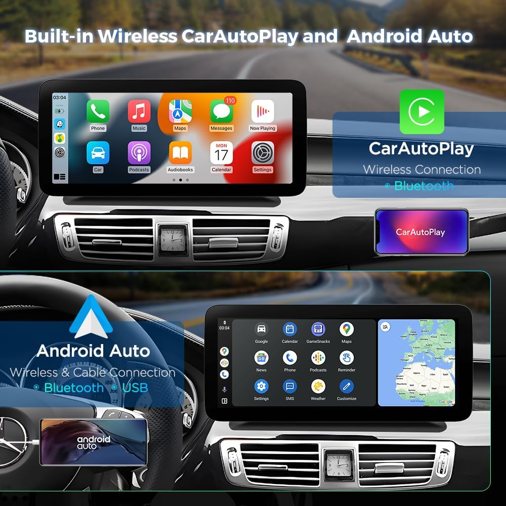 "Applicable Models & Years For Mercedes-Benz CLS-Class C218/W218 Sedan (2014-2017) with NTG5.0 / NTG5.1 / NTG5.2 System Important Notes If your car comes with AMI port. you need connect AMI cable to ISO cable ""audio in"" port. (AMI cable and extension cable provided in the package.) Main Features ※Octa Core with Latest Android 13 Octa-core with 8GB DDR4 RAM, 128GB Solid State ROM ※1920*720 with 10.25” Touch Screen Upgrades your driving experience with supersized entertainment ※IPS Panel, 178°Viewing Angle Enjoy viewing on a big-screen stereo without eye fatigue or discomfort. ※Wireless Car Play & Wireless/Wired Android Auto Seamlessly displays compatible apps from your smartphone to the large screen for safer operations and get access to voice commands of Siri/Google Assistant directly from the head unit. ※Amplifier System Built-in professional DSP, compatible with Optic Fiber Amplifier. ※Bluetooth 5.1 Enjoy more steady connections and higher-quality transmission for hands-free calls and music streaming. ※Dual Wi-Fi Band Connecting Work with 2.4GHz or 5GHz band, providing faster speed flexibility. ※Multi-task Display Simultaneous run two application like music and navigation on the 10.25“ IPS screen for easier multi-tasking. Optional Accessories Need OBD Function? B09D3DVZVR / B015MU8UN6 / B07X9JXV28 / B08HQ9LQ9X optional Need TPMS Function? B07WQFKV5G / B07DKB4GD2 optional Need External DVR? B07MBYCG4C optional Need Reversing AHD Camera? B00GY3BVT6 optional Accessories 1 x ISO Wiring Harness 1 x AMI Cable 1 x GPS Antenna 1 x 4G Antenna 1 x USB/LVDS Cable 1 x SIM Card Ejector 1 x Fix Mount 6 x Screws 1 x Installation Instruction 1 x User Manual"