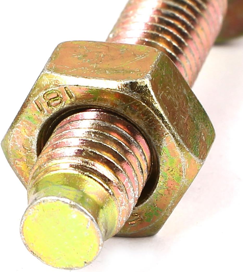Aexit Yellow Zinc Plated Expansion Bolt Anchors Gecko Car Repair Bolts M10x80mm 4pcs (a2b83a518a76ddb019781bf2808cdc78)Made of metal material in bronze tone, M10 thread, 80mm long.High strength expansion screws car repair gecko expansion bolt, good quality for longer using.0Description in FrenchBoulons d’expansion zingués jaunes Boulons M10x80mm 4pcs de réparation de voiture de GeckoLongueur totale: 80mm / 3.1' '; Taille de la rondelle plate: 20 x 1,5mm / 0.8' 'x 0.06' '(D * T)Diamètre de perforation: 10mm / Largeur de la noix hexagonale: 17mm / 0.67' 'Nom du produit: Boulon d'expansion; Matériau: Métal, zingué jaunePoids: 202 g; Contenu de l'emballage: 4 x boulon d'expansionTaille de filetage: M10 x 37mm / 0.4' 'x 1.5' '(D * L); Couleur principale: Ton Bronze