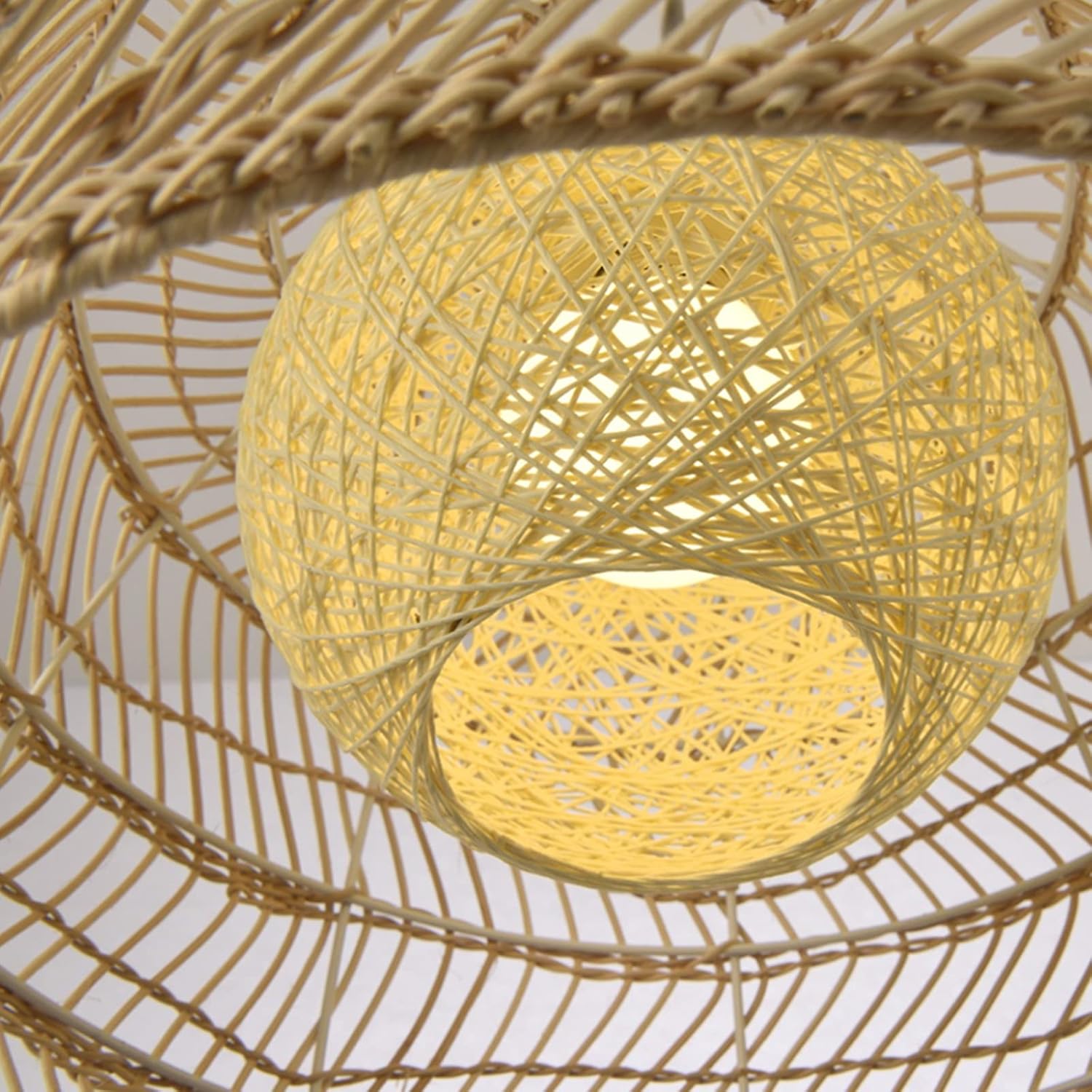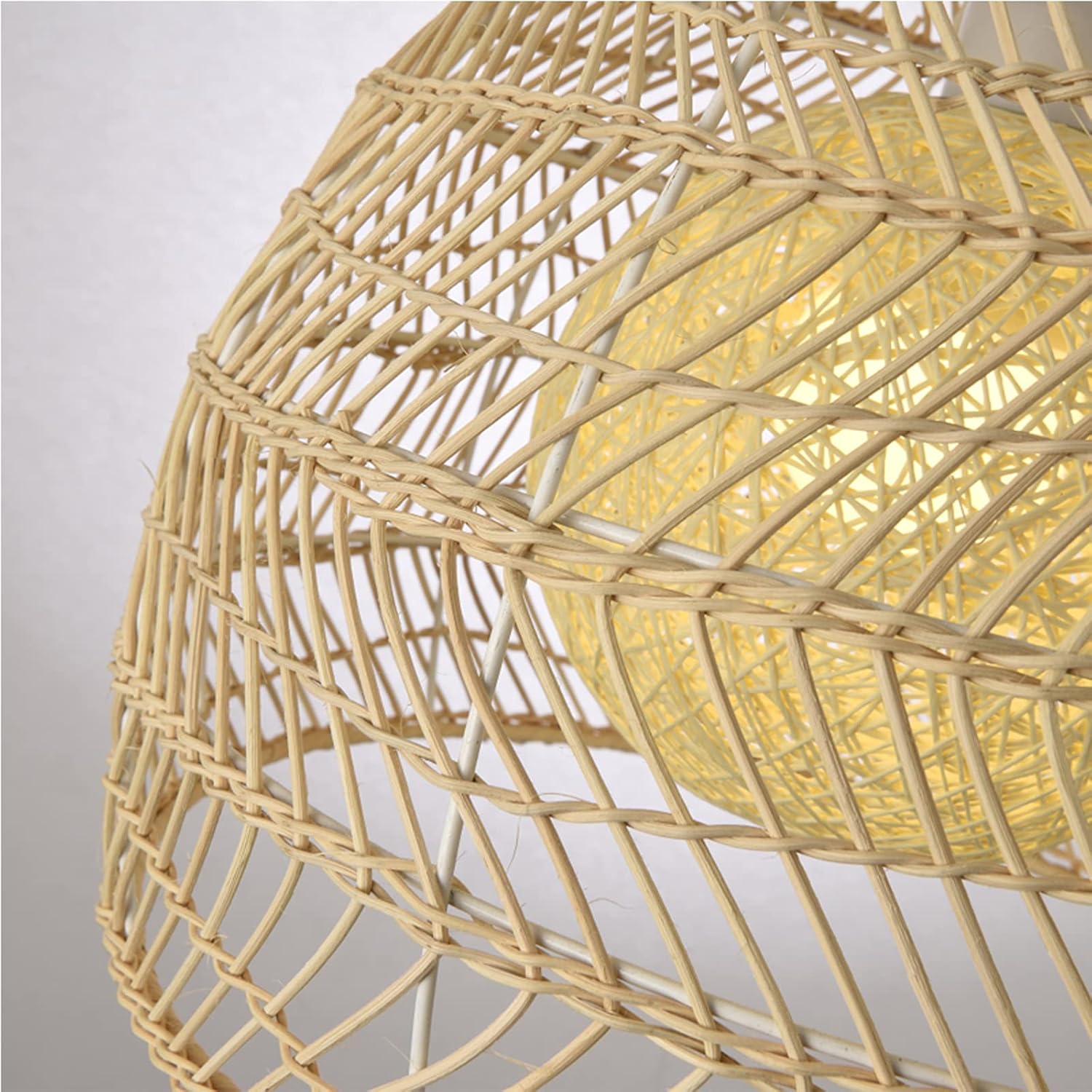 YUEGOO Chandeliers,Modern Wicker Ball Ceiling Light Hand-Woven Lampshade Chandelier Natural Pastoral Style Lamp/35 x 35Cm