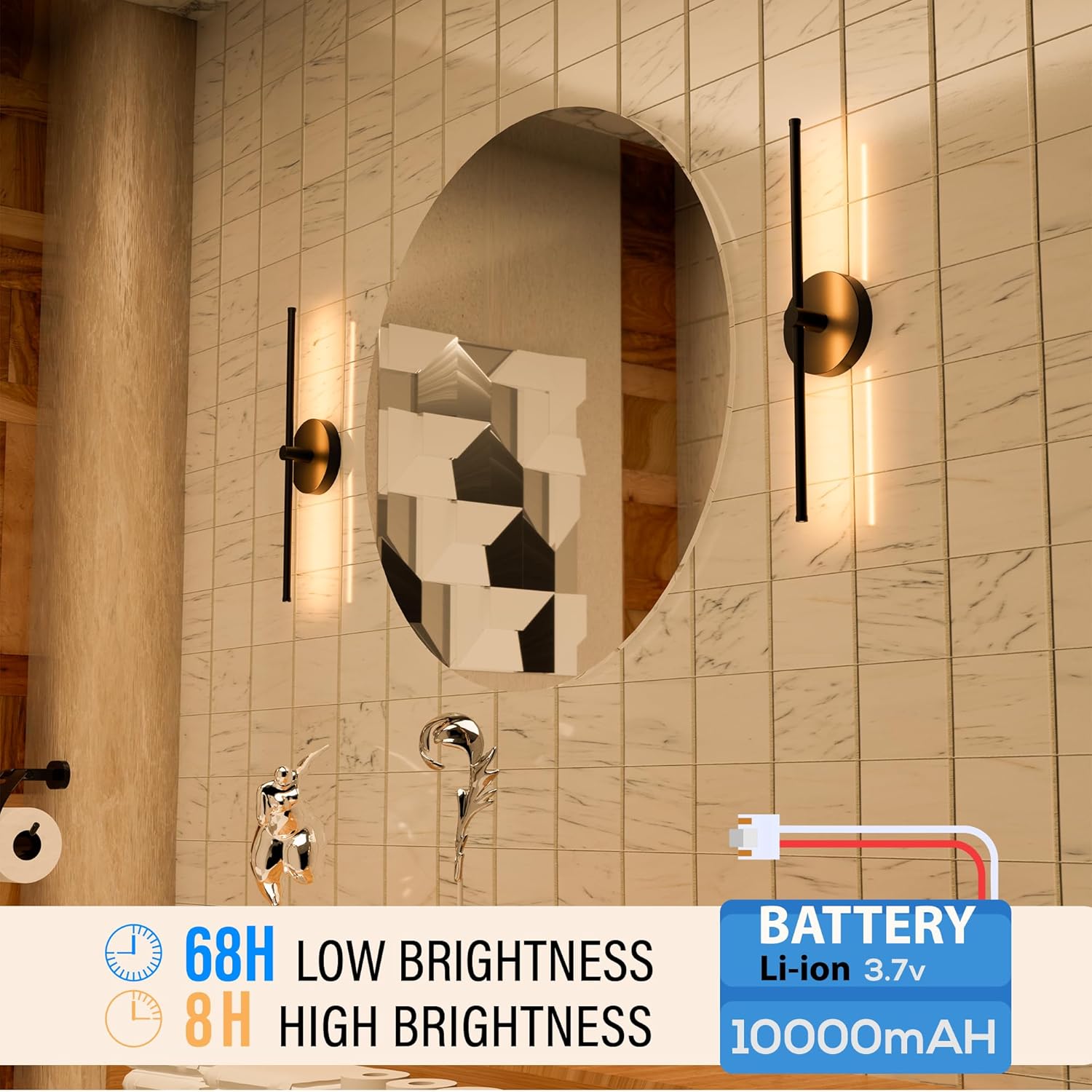 | Other Special Features of the Product | Modern Linar Wall Sconce, Wireless Installationn, Battery Operated, Rechargeable, Long Lastingg Battery 10000mAh, 2700-6000K Color Changing,Brightness Adjustable, Remote and Touchbase Control, Modern indoor wall lamp decoration |