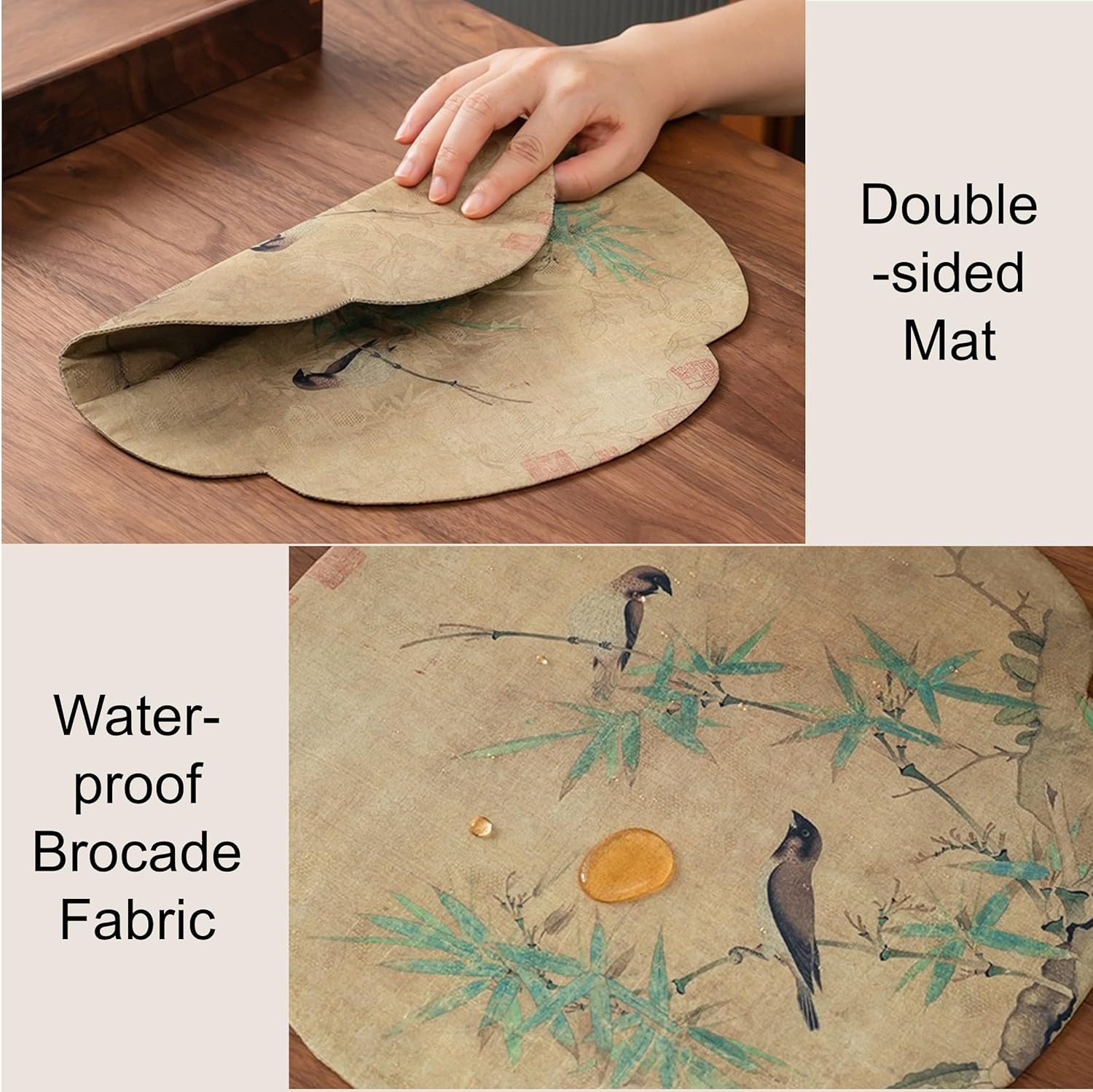 Zen Lotus Design Tea Set (Terra Umber) and Double-Sided Gongfu Tea Ceremony Mat with Chinese Painting (13*13 Inches), 1 Pot, 1 Fairmess Cup and 3 Mini Cups