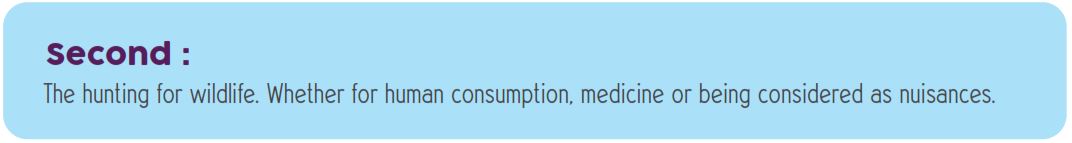 According to Fraser (2011), there are four categories of human actions, which have an impact to wildlife sustainability.